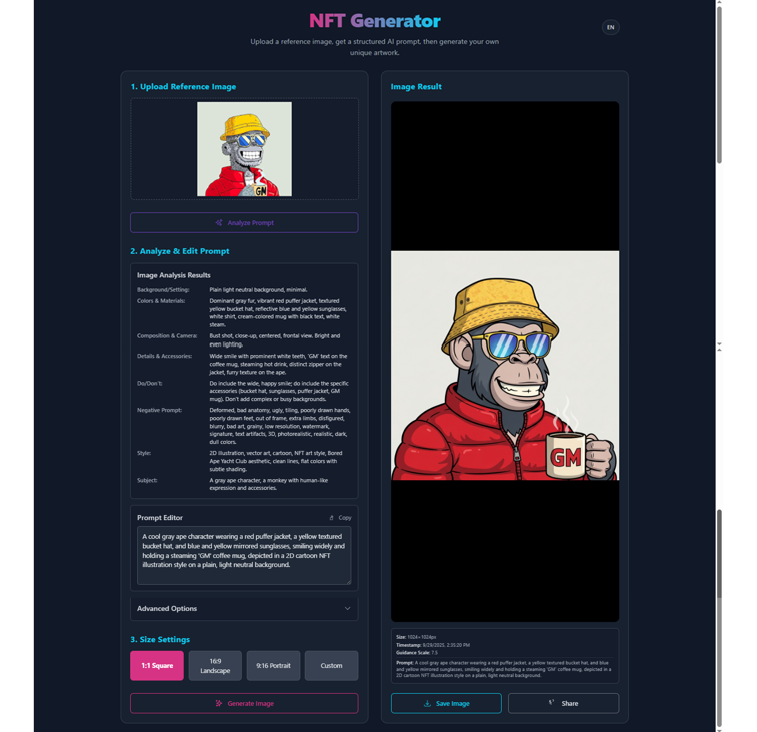 NFT Generator β Create, Edit Prompt, Generate Image, Download & Share Your NFT