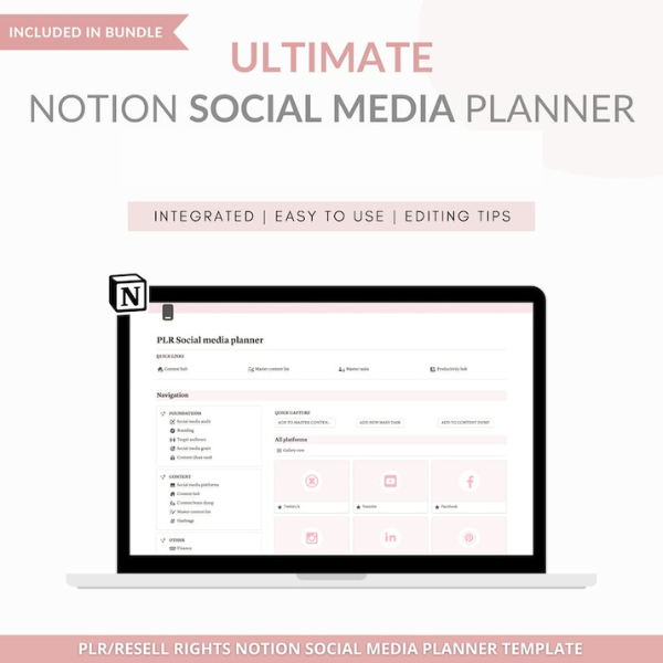 Simplify your life, grow your business, and organize your content with the Notion Template Bundle – a complete collection of Notion life planners, business planners, and social media dashboards.